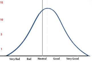 But there will also be random noise caused by inevitable variation and by some of the experiments being better quality than others. In the end, we might expect something looking kind of like a bell curve. The peak will be at “weakly effective”, but there will be a few studies to either side. Something like this: