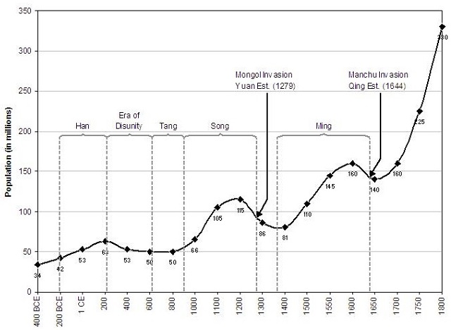 Also, it’s not too hard to look at the civilizations they didn’t study and fill in the gaps. The book barely mentions China, but it seems to fit the model pretty well (“the empire united longs to divide; divided longs to unite”). In fact, taking the quotation completely seriously – the empire was first united during the Qin Dynasty starting in 221 BC, which lasted only 20 years before seguing into the Han Dynasty in 202 BC. The Han expanded and prospered for about a century, had another century of complicated intrigue and frequently revolt, and then ended in disaster in the first part of the first century, with a set of failed reforms, civil war, the sack of the capital, some more civil war, peasant revolt, and even more civil war. The separate period of the Eastern Han Dynasty began in 25 AD, about 240 years after the beginning of the Qin-Han cycle. The Eastern Han also grew and prospered for about a hundred years, then had another fifty years of simmering discontent, then fell apart in about 184 AD, with another series of civil wars, peasant rebellions, etc. This was the Three Kingdoms Period during which “the empire united longs to divide, divided longs to unite” was written to describe. It lasted another eighty years until 266 AD, after which the Jin Dynasty began. The Jin Dynasty was kind of crap, but it lasted another 180 years until 420, followed by 160 years of division, followed by the Sui and Tang dynasties, which were not crap. So I don’t think it takes too much pattern-matching to identify a Western-Han-to-Eastern-Han Cycle of 240 years, followed by an Eastern-Han-to-Jin Cycle of 241 years, followed by a Jin-to-Sui/Tang-Cycle of 324 years.