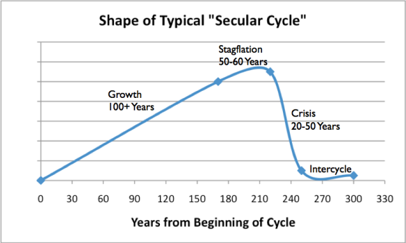 There is a tide in the affairs of men. It cycles with a period of about three hundred years. During its flood, farms and businesses prosper, and great empires enjoy golden ages. During its ebb, war and famine stalk the land, and states collapse into barbarism.