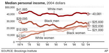 Over the same period, the decrease in male oppression of women has resulted in an obvious and continuing rise in women’s incomes. This suggests that the externalist hypothesis of women’s poor incomes was at least partly correct. But an apparent corollary is that it casts doubt on the externalist hypothesis of racial income gaps.