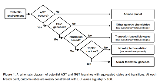One other highlight hidden in the supplement: in the midst of a long discussion on the various ways intelligent life can fail to form, starting on page 6 the authors speculate on “alternative genetic systems”. If a planet gets life with a slightly different way of encoding genes than our own, it might be too unstable to allow complex life, or too stable to allow a reasonable rate of mutation by natural selection. It may be that abiogenesis can only create very weak genetic codes, and life needs to go through several “genetic-genetic transitions” before it can reach anything capable of complex evolution. If this is path-dependent – ie there are branches that are local improvements but close off access to other better genetic systems – this could permanently arrest the development of life, or freeze it at an evolutionary rate so low that the history of the universe so far is too short a time to see complex organisms.